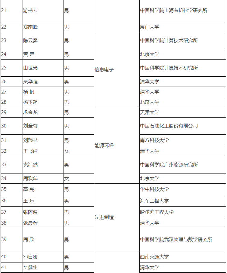 根據(jù)名單我們可發(fā)現(xiàn),此次獲獎(jiǎng)?wù)呓^大多數(shù)來自17所高校,如北京大學(xué)、清華大學(xué)、上海交通大學(xué)、浙江大學(xué)、中科大、南京大學(xué)、武漢大學(xué)、華中科技大學(xué)、東南大學(xué)、廈門大學(xué)、西南交通大學(xué)等;9名獲獎(jiǎng)?wù)邅碜韵嚓P(guān)研究所,還有一名來自中國石油化工股份有限公司。