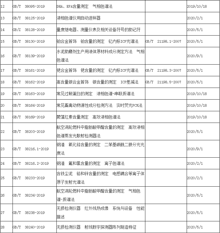 在343項國家標準中有多項涉及儀器儀表分析檢測標準,如電感耦合等離子體原子發射光譜法、原子熒光光譜法、電感耦合等離子體質譜法、傅里葉變換紅外光譜法等。部分信息如下: