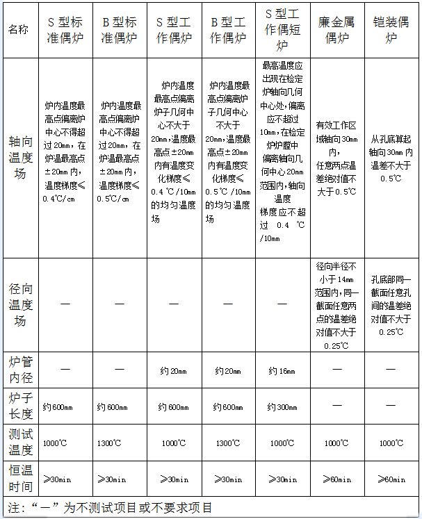 本測(cè)試規(guī)范適用于(300~1500)℃范圍內(nèi)熱電偶檢定爐溫度場(chǎng)的測(cè)試。對(duì)于立式、管式檢定爐及其他形式的檢定爐和校準(zhǔn)爐,可參照本規(guī)范執(zhí)行。