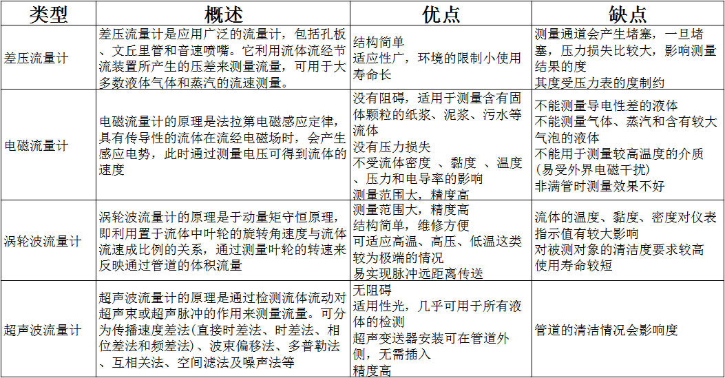 普天同創(chuàng)為大家整理四種常見(jiàn)流量計(jì)的優(yōu)缺點(diǎn),供參考: